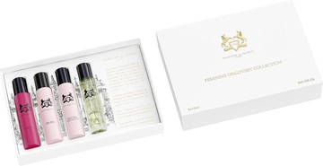 'If you've always wanted to try out the luxury niche fragrance brand, Parfums de Marly, now's the perfect time - our exclusive discovery set for women allows you to indulge in four of their most beloved perfumes.' - Kate, Escentual Beauty Team. Why You'll Love The Parfums de Marly Discovery Set: Exclusive to Escentual - you can't buy this set anywhere else. Showcases four best-selling women's fragrances - Delina included. Features travel-friendly mini scents to suit different perfume preferences. Acts as the perfect opportunity to try out Parfums de Marly's top-sellers. Offers a cost-effective way to try before you buy. Held in a chic coffret with a stunning castle illustration. What You Need To Know: Whether you're yet to try Parfums de Marly or you're already a loyal fan who's after a travel-friendly solution to ensure you're never without your signature scent, the Parfums de Marly Discovery Set for her is made for you. It showcases a quartet of exceptional scents that prove why Parfums de Marly continue to reign supreme in the world of niche fragrance. Perfect for floral fragrance fans, the set includes trial-sized variations of everything from the best-selling rose-filled Delina to the deliciously gourmand Oriana. Why It's Escentual: Not yet had the opportunity to try Parfums de Marly for yourself? This is the place to start. Our exclusive Parfums de Marly perfume discovery set introduces you to four ultra-long-lasting niche fragrances, which centre around sweet, floral notes. But if you're already a Parfums de Marly fan, you'll equally enjoy this set - it gives you the opportunity to pop a fragrance in your handbag, travel bag or desk at work to ensure you're never without a touch of French luxury. Naturally, the star of the set has to be Delina. It's an icon for a reason. In fact, a fair few Team Escentual members wear this fragrance when they're feeling extra luxurious. As a result, we're predicting this set will fly off the shelves, so you better snap it up quickly. Especially given the fact that it features a stunning design depicting the castle of Marly, created by talented artist, Anne-Lise Bertrand. The Best Way To Use It: Spritz your chosen fragrance directly onto your pulse points - namely, the neck and wrists - for the best performance. The Sustainable Side: The outer packaging can be recycled after use.