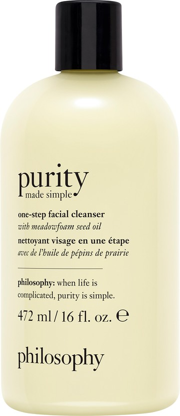 Cleanse, tone and condition your skin with the award-winning Philosophy Purity Made Simple One-Step Facial Cleanser, a makeup remover for the face and eyes that's suitable for all skin types. The number one facial cleanser in the US, the Purity Made Simple Cleanser lifts away makeup, dirt, oil and impurities from the skin in just one step. Philosophy's multitasking cleanser is highly efficacious, yet gentle and respectful. It effectively cleanses and tones the skin, while lightly hydrating the complexion. Plus, the formula deeply cleanses pores, while balancing sebum production through the use of anti-inflammatory meadowfoam seed oil, an antioxidant-rich ingredient that helps soothe acne-prone skin and reduce redness. Helping to transform dull skin, the foaming cleanser is also enriched with a blend of 12 essential oils - including rosewood, sandalwood and sage - which help promote rejuvenation. These oils boast a number of anti-ageing and skin-soothing abilities, so the conditioning formula also helps renew and regenerate your complexion with each use. The result? Skin feels soft, hydrated and conditioned - without any feelings of tightness. Why We Love It The Purity Made Simple Cleanser was Philosophy's debut product, and was first released in 1996. Fans instantly fell in love with both this cleanser and the brand, and it's no surprise why. There's so much to love about this rinse-off cleanser. It melts away makeup - even stubborn mascara - while nourishing, soothing and moisturising your complexion. The banana-hued gel is slightly thick yet transforms to a light lathering foam as you massage it into the skin, while it releases a clean scent that's refreshing and delicate. We love how the skin feels after use, as your complexion is instantly soft and smooth - and perfectly prepped for the rest of your skincare regime. How To Use It Every morning and evening, apply a 20 pence piece-sized amount of the cleanser onto damp skin and massage for 30-60 seconds. Rinse off, and pat dry. Works Well With To continue to care for your complexion, be sure to explore the full Purity Made Simple range for more gentle yet effective skincare. Values Clinically-tested.