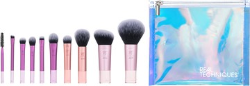 'The Real Techniques Travel Fantasy Mini Brush Kit is the only brush set you need for commuting or jetsetting.' - Keavy, Escentual Beauty Team. Why You'll Love The Mini Brush Kit: Features ten mini versions of your favourite RT beauty tools. An ideal gift for a beauty lover who's always on-the-go. Features brushes for every step of your makeup regime including base, blush, eyes and brows. Made with UltraPlush(TM) Bristles for naturally flawless finish. Comes with a iridescent zip-up pouch to store your tools when you're on the move. The Gift Set Includes: Real Techniques RT #210 Mini Expert Concealer Real Techniques RT #407 Mini Multitask Real Techniques RT #206 Mini Contour Real Techniques RT #406 Mini Medium Sculpting Real Techniques RT #308 Mini Medium Shadow Real Techniques RT #313 Mini Definer Real Techniques RT #343 Mini Spoolie Real Techniques RT #332 Mini Smudge Real Techniques RT #301 Mini Base Shadow Real TechniquesRT #307 Mini Shading Real TechniquesRT RT Mini Makeup Bag What You Need To Know: This set is great value for money as it packs every brush you need into an affordable kit with the bonus of them all being travel-friendly. The synthetic brushes are everyday essentials for a flawless base. You get mini brushes for every technique, such as concealing, applying blusher, setting and contouring your makeup. In addition, you also get a selection of brushes for eyes and brows, which includes four tapered eyeshadow brushes to create soft to high impact eye looks and a brow spoolie for grooming brows. Why It's Escentual: You can take the Real Techniques tools away in the makeup bag it comes with, or you can pop your favourite brushes in your handbag for on-the-go touch-ups. You also won't need to worry about them getting lost or dirty knocking around at the bottom of your purse or makeup bag; the brush set comes with a holographic zip up pouch so that you can keep them stored away and kept clean and hygienic on your travels. The Best Way To Use It: Follow the directions written on the side of the brush for best use of each tool. Use the purple brushes for eyes and brows. Use the pink brushes for the blush, base and contour, and pink brushes for finishing touches such as concealer and setting powder. Values: Vegan. Cruelty-free.