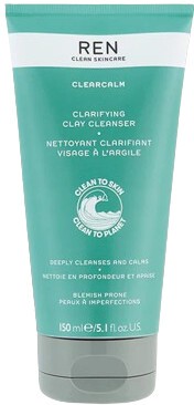 'Combat the three main causes of breakouts with the REN ClearCalm Clarifying Clay Cleanser, a non-foaming cleanser that removes daily build-up.' - Darcey, Escentual Beauty Team. Why You'll Love The REN ClearCalm Clarifying Clay Cleanser: Purifying non-foaming cleanser for blemish-prone skin. Fights existing blemishes while preventing future breakouts. Creamy, clay texture draws out impurities without drying out the skin. 97% natural origin formula. Invigorating, fresh scent perfect for tired mornings. What You Need To Know: Formulated using 97% natural origin ingredients, the REN ClearCalm Clarifying Clay Cleanser gently exfoliates combination and oily skin types to combat the three main causes of breakouts and blemishes. The vegan formula, packed with three key bioactives, removes excess sebum, dead skin cells and dirt without stripping your skin for a clear, smooth and healthy-looking complexion. The non-foaming cleanser has a kaolin clay base that draws out impurities and oils, while added willow bark extract reduces the appearance of enlarged pores. The dermatologically-approved complex removes pollution and daily build-up without causing redness or irritation. Why It's Escentual: Both a solution and a preventative, the Clarifying Clay Cleanser helps to reduce the frequency of breakouts. The soft, creamy clay texture offers a gentle cleansing experience - ideal for teenage or oily-sensitive skin. The natural extracts give the formula an invigorating and fresh aroma, which makes for the perfect pick-me-up in the morning or wind-down in the evening. ClearCalm fans will notice their Clarifying Clay Cleanser is looking a little different! But don't worry, its the same beloved formula in new eco-conscious packaging made from post-consumer plastic - just when we thought it couldn't get better. The Best Way To Use It: Once or twice a day gently massage onto damp skin before rinsing off with water. The REN ClearCalm Clarifying Cleanser can also be used as a 10-minute leave-on mask. The Sustainable Side: The REN ClearCalm Clarifying Clay Cleanser comes in a squeezy tube made from 50% post-consumer plastic (PCR) and topped with a 100% PCR cap. The whole bottle is recyclable - just keep it together and pop in your recycling bin. Values: Dermatoligically tested and approved. PETA certified cruelty-free. Gluten-free, nut-free.