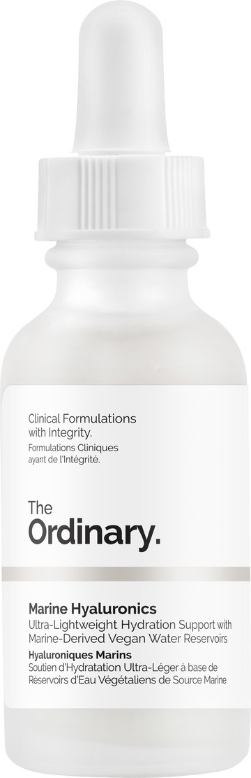 Quench your skin with The Ordinary Marine Hyaluronics, an ultra-lightweight, vegan serum suitable for all skin types that moisturises and protects your complexion. The Ordinary uses only sustainably sourced Marine Hyaluronic for this hydrating formula. Just as effective as hyaluronic acid but much lighter in feel and texture, Marine hyaluronic acid creates water reservoirs that attract and hold water on the surface of the skin, providing dehydrated complexions with optimal hydration. Marine Hyaluronics serum combines sustainably-sourced derivatives such as exopolysaccharides from skin-friendly marine bacteria, which increases the synthesis of collagen and skin elasticity. Hawaiian red algae and micro-filtered blue-green algae (some of nature's most potent antioxidants) detoxify the skin, while glycoproteins from Antarctic Marine Sources strengthen skin. With 23% active ingredients, including a whole host of amino acids, which all work together to support and condition the skin, keeping your complexion smooth, supple and healthy. Why We Love It The Ordinary Marine Hyaluronics serum is exceptionally light and is almost the same consistency as water, which means that it's instantly absorbed into the skin. We love how smooth and refreshed skin feels after using this, and that skin looks visibly plumper and as well as smooth. Easy to use too, with a built-in pipette so that you always apply just the right amount. How To Use It Use the pipette to apply a few drops to your face, and then massage the serum into the skin. Use this daily-use serum in your morning and evening skincare routine before applying your creams. Works Well With For even more moisturising formulas explore the full The Ordinary's Hydrators and Oils range. Values Vegan, pH 4.00 - 5.00. paraben-free, sulphate-free, fragrance-free, alcohol-free, oil-free, silicone-free, nut-free, gluten-free, cruelty-free.