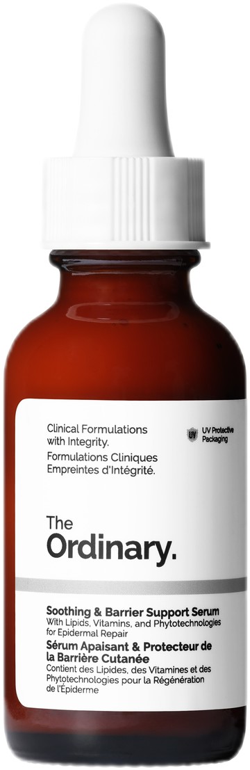The Ordinary Soothing & Barrier Support Serum is a multi-active solution targeted at reducing the look of irritated skin. It helps recover the skin barrier in 2 hours*, and provides an immediate 86%** boost in skin hydration. This helps soothe feelings of discomfort, and reduce signs of redness over time. While strengthening the skin barrier, the Soothing & Barrier Support Serum also improves the look of uneven texture for a smoother appearance. Formulated with multiple vitamins, lipids, and phytotechnologies, this comprehensive serum is suitable for all skin types, including sensitive skin. The multi-active formula contains 8 key technologies: Vitamin B12: Helps support skin barrier by reducing dryness and the look of redness, while also imparting the serum's characteristic pink hue. Gallic Acid Derivatives: A combination of 3 activated forms of gallic acid (propyl gallate, gallyl glucoside and epigallocatechin gallyl glucoside (EGCG)) helps soothe skin discomfort and target the look of redness associated with external stressors irritants. Bisabolol: Helps reduce the look of skin redness. Soothing Complex: Reduces feelings of skin tightness and discomfort from dryness. Ceramide Complex: Plant-derived ceramides (sphingolipids and phospholipids) provide topical delivery of key skin components. 2% Niacinamide Supports essential skin components that help promote hydration. Sugar-based hydrators: Offers long-term skin hydration and helps support the skin barrier function. Centella Asiatica Phytotechnologies: Isolated triterpenes; asiaticoside, madecassic acid and asiatic acid, derived from Centella Asiatica (Gotu Kola) that support protection helps protect the skin against external stressors irritants Testing Shows: Repairs and strengthens the skin barrier Provides an immediate 86% boost in skin hydration Provides hydration that lasts all day Reduces the look of redness Improves the look of uneven skin texture for a smoother appearance