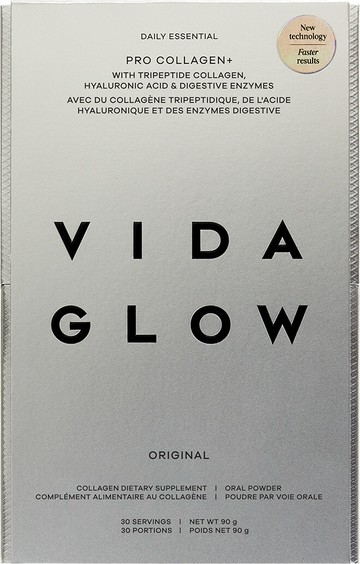 Why You'll Love It: Quicker results as it's the smallest collagen peptide on the market. Hydrated and firmer skin. Reduced wrinkles: 42% reduction in wrinkles in just 21 days. Convenience: it's easy to fit into your routine. Tasteless formula = zero fishy aftertaste. You can get your money back if you're unhappy with the results. What Vida Glow Say New technology. Faster results. As part of your daily routine, Pro Collagen+ targets deeper lines and reduces wrinkle count by 42% in 21 days. Pro Collagen+ is our most innovative collagen complex for advanced ageing concerns, combining a potent blend of hydrolysed marine collagen tripeptides, a clinically studied dose of hyaluronic acid to significantly increase skin moisture, and digestive enzymes. Harnessing cutting-edge technology in the smallest collagen peptide on the market for superior bioavailability, optimised collagen digestion and anti-ageing effects - results across skin texture, hydration, elasticity and wrinkle count are accelerated. Integrated into your routine, Pro Collagen+ is a flavorless formulation clinically proven to promote skin regeneration, enhance skin hydration and increase skin firmness. Penetrating deeper into the skin to stimulate new collagen production for your most confident glow. Active Ingredients Hydrolysed Marine Collagen Tripeptides: Collagen tripeptides offer the lowest molecular weight of as low as 300 daltons, and are absorbed by the intestinal tract directly for the greatest bioavailability. Studied to stimulate collagen synthesis and address signs of ageing by promoting elasticity, firmness, hydration and overall skin health. Hyaluronic Acid: Plays a vital role in skin hydration and skin health. ProCollagen+ contains a low molecular weight of Hyaluronic Acid to significantly increase skin moisture and retention. Digestive Enzymes: Supports healthy digestion and the further breakdown of collagen peptides into dipeptides and triptides to increase collagen absorption and bioavailability. How To Use Mix one sachet into water or any alcohol-free beverage and stir well. Consume one a day, every day. Why It's Escentual The daily collagen supplement boasts the smallest collagen peptide on the market, meaning faster absorption and quicker results. If you're looking for a noticeable difference in a short time, this is perfect. Clinical trials suggest significant improvements in skin hydration and firmness within weeks. This product is a must-try for those concerned with dryness and loss of elasticity. Values Halal approved. Free From Gluten-free, dairy-free.