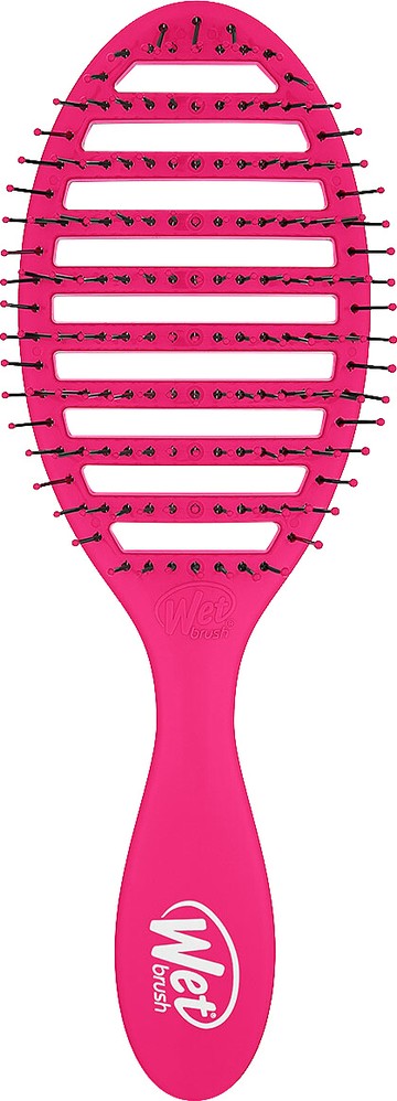 'Save time whilst keeping your hair healthy and strong with the Wet Brush Speed Dry Brush. The vented design increases airflow as you blow dry to reduce breakage by 45%.' - Darcey, Escentual Beauty Team. Why You'll Love The Wet Brush Speed Dry Brush: A vented hairbrush that speeds up drying time for 45% less breakage. Features HeatFlex heat-resistant bristles to detangle hair whilst drying. Patented design that contours to your scalp to be gentle as you brush. Can be used with any hairdryer for a speedy blow dry. Easy to grip ergonomic handle for comfortable styling. What You Need To Know: The Wet Brush Speed Dry Brush allows you to style your hair without damaging it. Designed with vents between each line of bristles, the hairbrush helps to speed up your drying time by allowing the moisture to escape faster. Recommend and used by stylists, the Speed Dry Brush has patented heat-resistant bristles that gently detangle your hair while blow-drying for 45% less breakage. The unique brush design contours to your scalp for comfortable and easy brushing; suitable for all hair types, the brush effortlessly glides through thick and dense hair to reduce brushing effort by 55%. Why It's Escentual: Avoid prolonged exposure to heat that could damage your hair with the Wet Brush Speed Dry Brush, an award-winning design that helps to keep your hair happy and healthy. The innovative design is perfect for styling your hair as it is compatible with any hair dryer - you can create a smooth sleek look or detangle ready for a bouncy blow dry. The hairbrush features an ergonomic handle that is comfortable to hold, essential for working through longer and thicker hair types. Fine hair that tangles easily is also smoothed to perfection with the Speedy Dry Brush. The Best Way To Use It: Section your hair before drying it. Work the Speed Dry Brush through your wet/damp locks as you blow dry your hair until you achieve your preferred tangle-free style. Awards: Pure Beauty Awards 2019 - Best New Hairstyling Product.