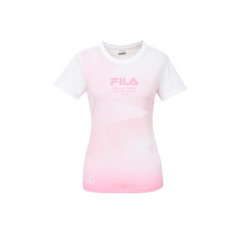 FILA 女抗UV吸濕排汗短袖T恤-白色/粉 5TEZ-1005-WT