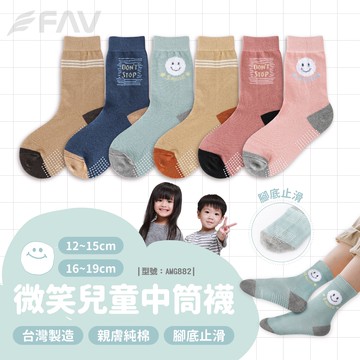 【FAV】止滑 童襪【3雙1組】中筒襪/腳底止滑/純棉/兒童襪/防滑襪/中統襪/女童襪/型號:AMG882