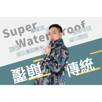 【雨傘家族】紳士前開式雨衣-特色塗鴉系列|藝術風機車雨衣|Super Waterproof極度防水