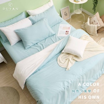 DUYAN竹漾 【文青簡約設計】舒柔棉 床包被套/鋪棉兩用被組-薄荷綠床包+白綠被套 台灣製