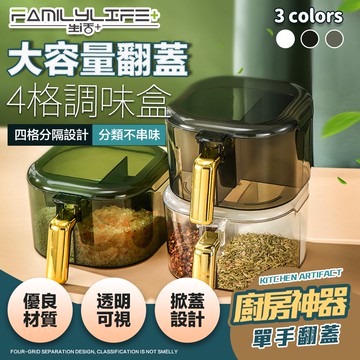 【FL生活+】大容量翻蓋 四格調味盒 三格調味盒 密封調味盒 密封調味罐 料理用具 玻璃調味罐 調味盒 調料盒 雙格調味