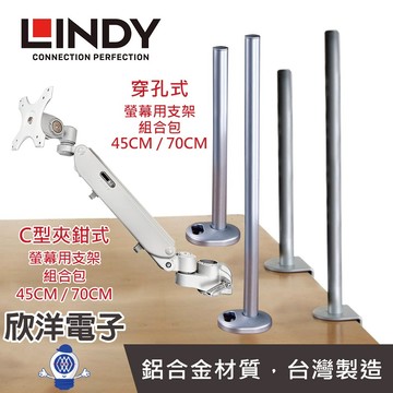 LINDY林帝《優惠組合價》輕薄液晶螢幕氣壓式支臂 + C型夾鉗式支桿 or 穿孔式 45CM / 70CM 電子材料