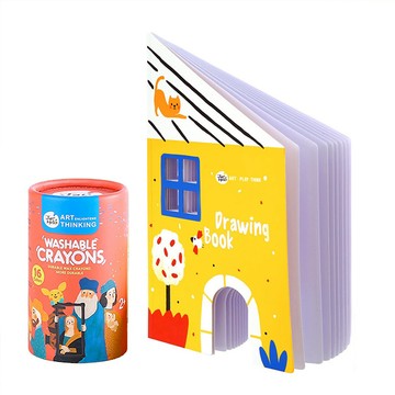 【JarMelo 原創美玩】兒童繪本-我的小屋+可水洗蠟筆16色