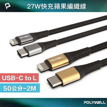 POLYWELL Type-C Lightning 蘋果PD快充編織線 50公分~2米 iPhone 寶利威爾 台灣現貨