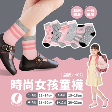 【FAV】兒童襪【多雙組】台灣製/童襪/止滑襪/女童襪/防滑襪/時尚灰/地板襪/嬰兒襪/點點襪/型號:107、111