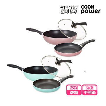 【CookPower鍋寶】金鑽不沾雙鍋快炒組30CM(30炒+22湯+30蓋+鏟) (兩色任選)