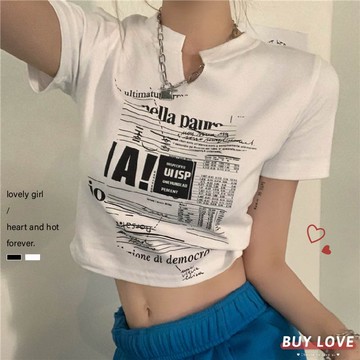 【買到戀愛】純棉 純欲短版T恤 女生漫畫風短版上衣 純棉短款圓領T 日系少女感短T【FT9002】