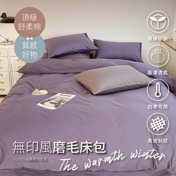 【夢之語】素色床包 被套 柔舒棉(紫色甜心) 床包枕套組 單人 雙人 加大 特大 枕頭套 台灣製 不起球 加高35cm