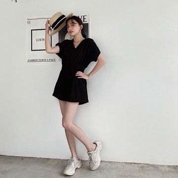 【Aa.chic】V領鬆緊反摺連身褲(兩色).女裝/V領/鬆緊/反摺/連身褲/休閒【C081068】