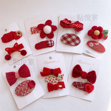 【點悅家】兒童髮夾 紅色毛絨款 蝴蝶結髮夾 紅色愛心 花朵 毛絨髮夾 瀏海夾 髮飾 多入組 多款可選 A37