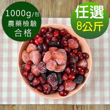【幸美生技】8公斤超值任選 原裝進口鮮凍莓果 藍莓/蔓越莓/覆盆莓/黑莓/黑醋栗/草莓(1000g/包)(超取限9kg)