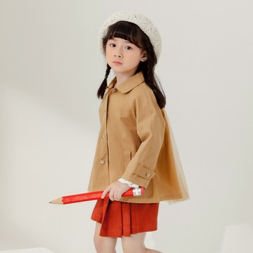 點我下載OB嚴選 純棉排釦網紗拼接造型風衣外套 《QE0004》童裝/現貨