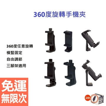 360°可調手機一字夾 橫豎自拍直播手機支架 多功能旋轉手機夾 自拍桿三腳架通用 直播 橫豎 自拍腳架