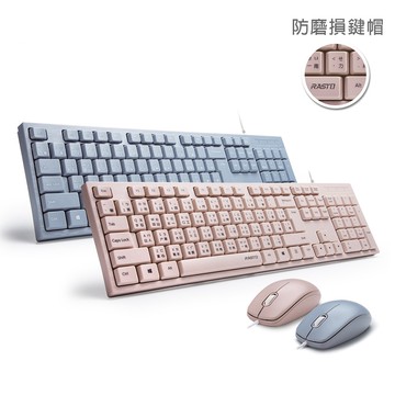 【RASTO】RZ3 超手感USB有線鍵盤.滑鼠組-粉/藍 滑鼠 鍵盤 USB鍵盤 USB滑鼠 馬卡龍色 可愛滑鼠