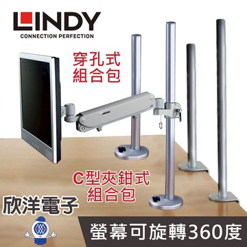 LINDY林帝《優惠組合價》輕薄液晶螢幕氣壓式支臂 + C型夾鉗式支桿 or 穿孔式 45CM / 70CM 電子材料