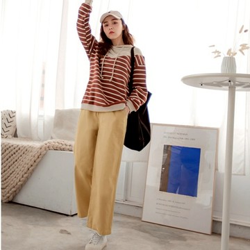 點我下載OB嚴選 純色高含棉休閒修身遮肉腰鬆緊直筒長寬褲 《BA5976》大尺碼/女裝/現貨