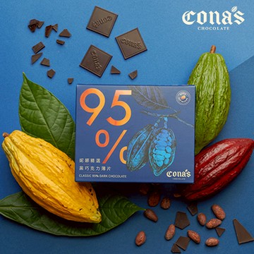 點我下載【Cona's妮娜巧克力】95%精選黑巧克力薄片(8片/盒)純黑!純可可脂低負擔-妮娜巧克力