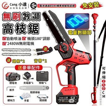 【Cang小達】電鏈鋸 8吋無刷電鏈鋸 高空鋸 免安裝/電量顯示/自帶油壺 2480W大功率電鏈鋸 高空兩用【品牌保障】