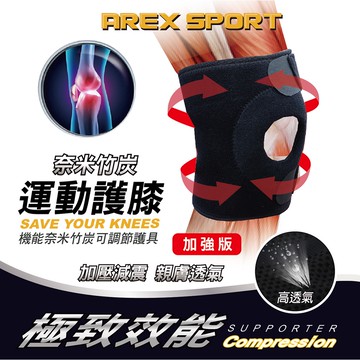 【AREX SPORT】AS-3429 運動護膝 登山護膝 鍺石墨烯(防捲支撐膠條)單支 / 加大碼 短護膝 護具