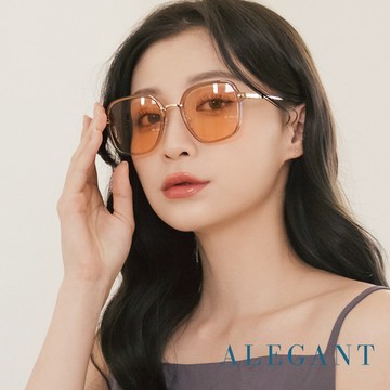 ALEGANT潤蜜橘韓版透視感金屬設計方框墨鏡│UV400太陽眼鏡│茶雲花田