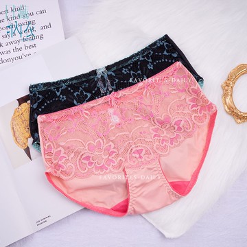 推薦出口日本刺繡蕾絲牛奶絲透氣彈力女士三角中高腰內褲有大碼