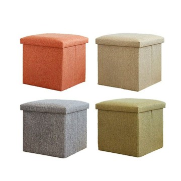 SIANG SI 多功能可折疊棉麻收納凳 40 x 25 x 25cm 灰色 舒適透氣 1個