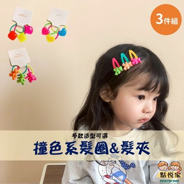 【點悅家】彩色糖果髮圈 髮夾(3件組) 不傷髮彈性髮圈 髮夾 彈力髮圈 糖果髮圈 彩色髮夾 瀏海夾 兒童髮飾 A12