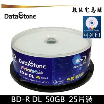 DataStone 亮面可列印 4x BD-R DL 藍光燒錄片 50GB 原廠25片裝