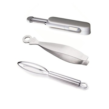 點我下載PUSH!廚房用品304不鏽鋼刮魚鱗器拔毛拔刺夾子鑷子三合一切絲削皮切片刀3件組D314