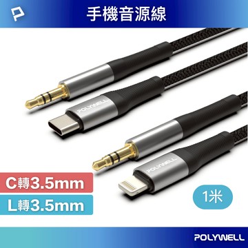 點我下載POLYWELL 音源轉接線 Lightning Type-C轉3.5mm 適用iPhone 安卓 寶利威爾 台灣現貨