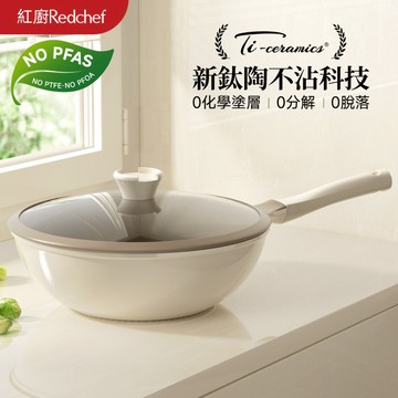 紅廚Redchef 鈦陶不沾炒鍋 32/30/28cm 平底炒鍋不含PFAS/PFOA 可用鐡鏟 IH電磁爐適用1年保固