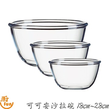 可可安沙拉碗18cm~28cm 沙拉碗 可可安沙拉碗 可可安碗 玻璃碗 玻璃碗 調理碗 備料碗 強化玻璃碗 沙拉缽