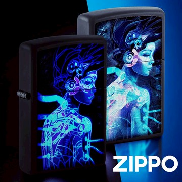 【ZIPPO官方旗艦店】女性改造人(螢光)防風打火機 現貨 科技感 圖像藝術 禮物 黑色夜光 終身保固 48517