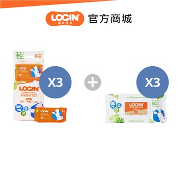 澳洲Login 洛格3合一除臭抑菌護理濕紙巾(50抽)3入+濕紙巾隨身包(8入組/64抽)3入 狗用 寵物濕紙巾