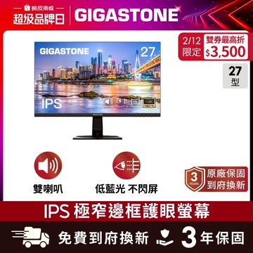 【GIGASTONE】FHD極窄邊框螢幕 27型護眼 FlickFree技術 喇叭 IPS 不閃屏 低藍光 27吋 電視