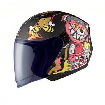 點我下載LALUNA 安全帽 IPO-2 暴力熊 消光黑曜紅 半罩 3/4罩 通風 內藏墨鏡 雙層鏡 磁吸扣設計 安全帽