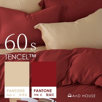 AnD House 天絲60支-聖誕紅 ✖ 香檳金 雙色配-床包被套組|安庭家居 素色 混搭