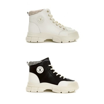 PLAYBOY 街頭率性 真皮厚底休閒鞋-白/黑(Y9665)