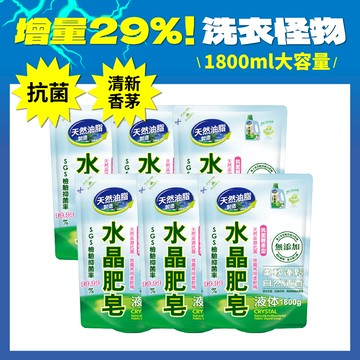 點我下載【南僑水晶】抗菌輕柔洗衣液體皂-補充包1800gx6包(箱購)