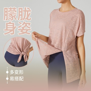 單側開叉長袖 春夏瑜伽罩衫女輕薄爛花運動上衣寬鬆跑步健身服