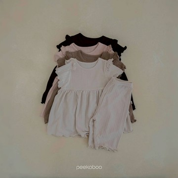 peekaboo 微光澤壓紋兒童套裝【現貨+預購】涼感 居家服 寶寶套裝 嬰兒套裝 女童套裝 韓國童裝 寶寶睡衣 髮帶