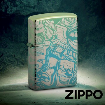 ZIPPO 紋身主題防風打火機 48410 高拋光青色打火機 閃閃發光 雷射 360° 設計 肖像 終身保固